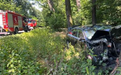 Wjechał z impetem w drzewo. Trasa Ostrów – Przygodzice (ZDJĘCIA)
