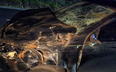 Jazda przez las bywa niebezpieczna. Przekonał się o tym młody kierowca