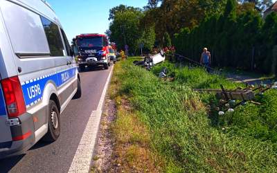 Dachowanie i ścięty słup. Młody chłopak poszkodowany (ZDJĘCIA)