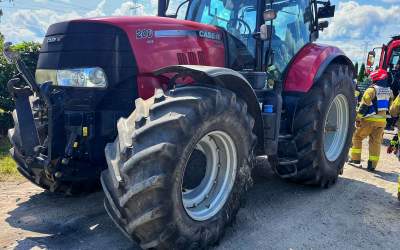 Osobówka na dachu po zderzeniu z traktorem