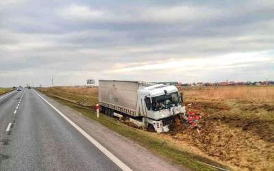 Ciężarówka w rowie na obwodnicy