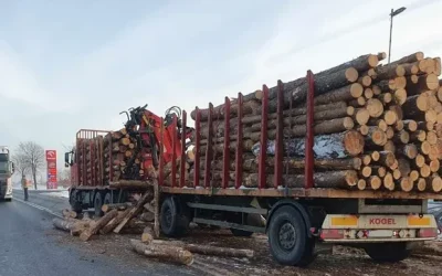 Drewniane bele uderzyły w osobówkę