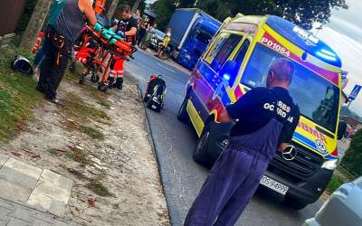Nastolatek na motocyklu z poważnym urazem