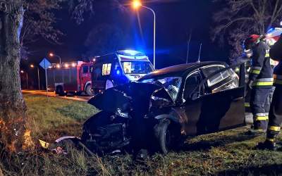 BMW z impetem wjechało w drzewo. W środku 3 młodych mężczyzn