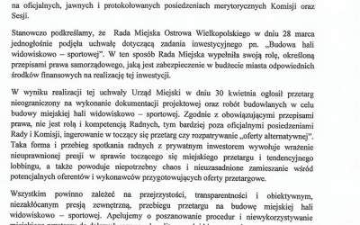 Radni Niezależni wydali oświadczenie w sprawie hali widowiskowo-sportowej