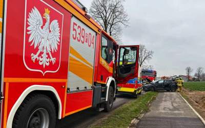 Zderzenie osobówki i ciężarówki k. Sobótki