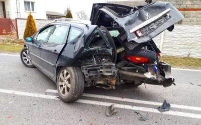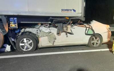 Auto z impetem wbiło się w naczepę ciężarówki (ZDJĘCIA, z REGIONU)
