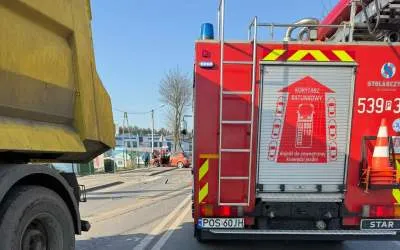 Bus z lawetą przewrócił się. Przewoził inny pojazd