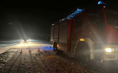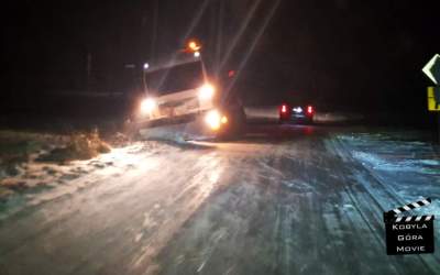 Trudne warunki na drogach, nawet pług wjechał do rowu