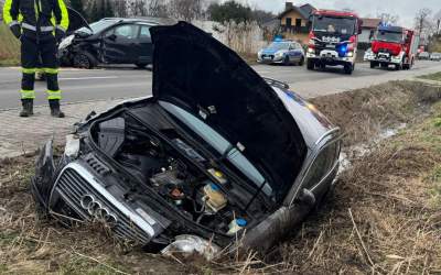 Zderzenie audi i peugeota. Są poszkodowani