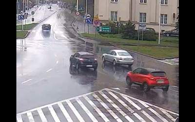 Kierowca passata nie ogarnął pasów na rondzie bankowym