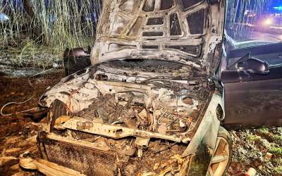 Auto wypadło i spłonęło przy byłym browarze. Kierowca trafiony