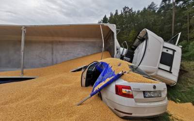 Zderzenie 3 aut i ciężarówki koło ronda Strugi (aktualizacja)