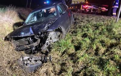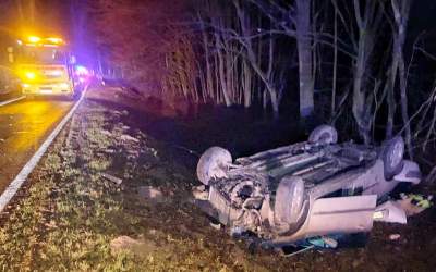 Samochód leżał skasowany. Kierowca ulotnił się jak kamfora