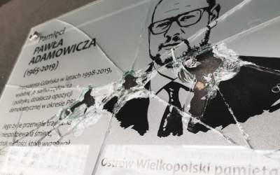 Zniszczona tablica Adamowicza i wulgarny wpis do prezydent Ostrowa