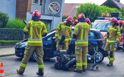 Wyjechała motocykliście. Cztery wozy straży pożarnej na miejscu