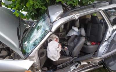 Hyundai zawinął się wokół drzewa