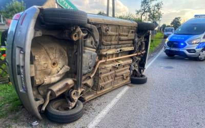 Jedno z aut na boku. Uczestniczyły 4 dziewczyny