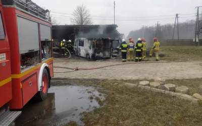 Pożar busa i wiaty