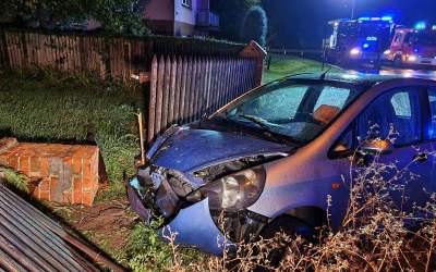 6 młodych ludzi w małej osobówce wjechało w płot
