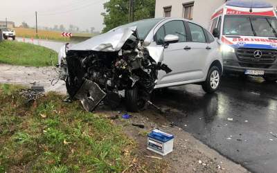 Czołowe zderzenie w Przybysławicach. Poszkodowane 2 dzieci