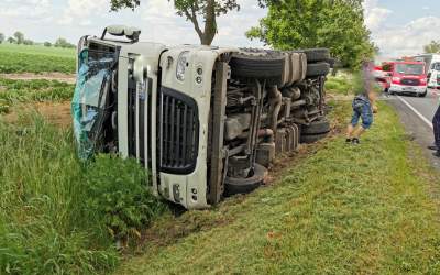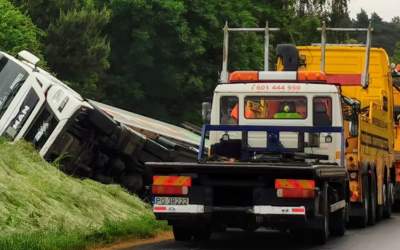 Kosili trawę, tir w rowie