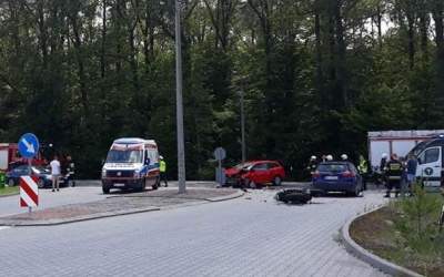 Wypadek motocykla z autem w m. Mazury