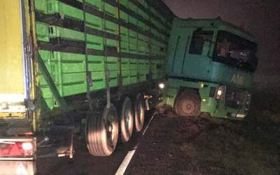 Ciężarówka gwałtownie hamuje i się łamie (wideo)