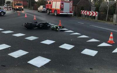 Wypadek z motocyklem. Dwie osoby poszkodowane
