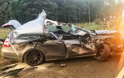 Mercedes wjechał w przyczepę ze zwierzętami