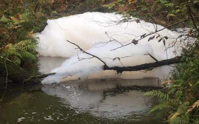 Zanieczyszczona rzeka. Metrowa piana
