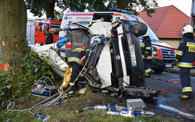Bus uderzył w drzewo. Kierowcę wyciągali strażacy
