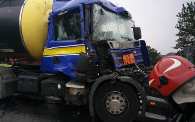 Zderzenie dwóch ciężarówek na wiadukcie przy Com40