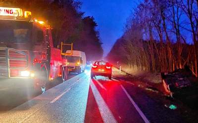 BMW wyprzedzało lawetę. Skończyło w rowie