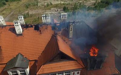 Pożar budynku przy ul. Wrocławskiej (z drona)