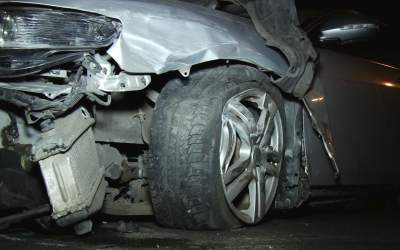 Wyrwane koła – efekt zderzenia na wiadukcie odolanowskim (wideo)