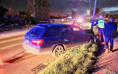 Radłów – BMW złamał latarnię i wylądował na dachu