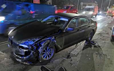 BMW wyleciał z ronda na Wysockiej i wjechał w Peugeota