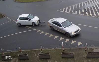 Kolizja na Rondzie Bankowym – Mercedes i Peugeot