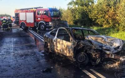 Potwornie wyglądający wypadek na DK25. Jedno auto spłonęło (aktualizacja)