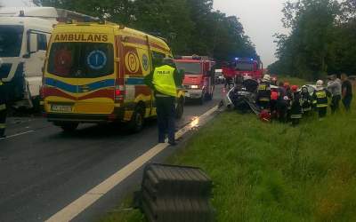 Wypadek dwóch tirów i osobówki. Kobieta zakleszczona (aktualizacja)