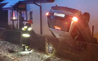 Volvo z pijanym dachowało w Lamkach