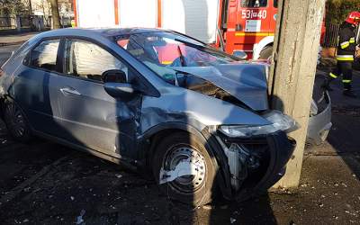 21-latek z BMW ściął latarnię w centrum Ostrowa