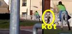 Najpierw widać na nagraniu jak ze sklepu wychodzi pierwsza ekspedientka i goni kocura po przysklepowym parkingu. Z pomocą przyszła druga waleczna kobieta. „Policjantki z kijami” wróciły po chwili do marketu. Na następnym nagraniu jedna z ekspedientek niesie kotka, dochodzi z nim do ulicy, po czym rzuca. Kot najpewniej spadł na cztery łapy i na szczęście nie przejeżdżał tamtędy żaden samochód.