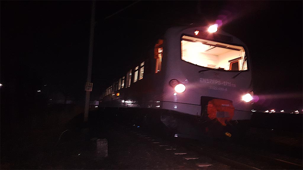 Wjeżdżając na przejazd zorientował się, że od strony Kalisza zbliża się pociąg. Zatrzymał się. Jednak przód Fiata Cinquecento za bardzo wystawał na torowisko. Pociąg osobowy trącił swoim zderzakiem auto. Silnik został wyrwany i zdaniem świadka przez chwilę pojawiły się płomienie. Dlatego użyto gaśnicy na to co pozostało z komory silnika.