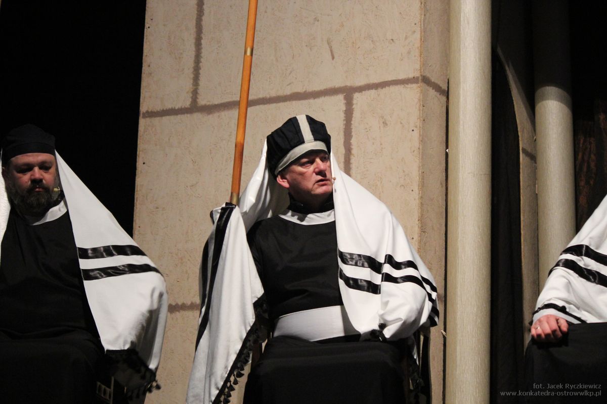 – Przeżyjmy tą tajemnicę męki Pana Jezusa w skupieniu, ciszy, w pewnej refleksji. Być może ktoś z nas odnajdzie w tym przedstawieniu siebie, swoich bliskich, swoje problemy, to wszystko, co nosi w swoim sercu, albo co przynosi codzienne życie – powiedział na początku proboszcz ostrowskiej Konkatedry ks. kan. Krzysztof Nojman jednocześnie witając zgromadzonych. Witała również młoda rodzina – małżonkowie z małym synkiem.