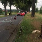 Auto był na tyle mocno rozbite, że postanowiono wezwać straż pożarną, pogotowie i policję. Według wstępnych ustaleń, samochód zjechał na pobocze i uderzył w drzewo. Kierowca wydmuchał ponad 3 promile alkoholu.