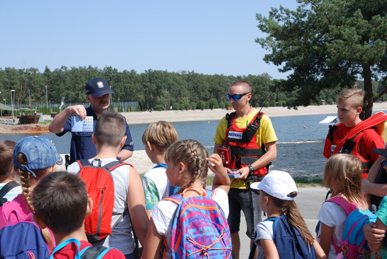 Policjanci z Ostrowa Wielkopolskiego wspólnie z ratownikami WOPR Neptun wczoraj, 29 sierpnia przypominali o bezpieczeństwie nad wodą w ramach ogólnopolskiej akcji pn. „Kręci mnie bezpieczeństwo… nad wodą”. Jak zachować się w sytuacji zagrożenia, gdzie bezpiecznie spędzać czas wolny oraz jakie są podstawowe zasady bezpieczeństwa nad wodą to główne tematy poruszane w okresie wakacyjnym przez policjantów podczas spotkań z dziećmi i młodzieżą.