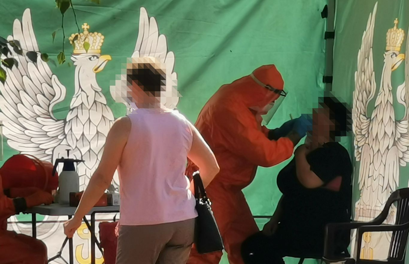 Aż 700 nowych osób jest wymazywanych w piątek w punkcie Check & Go, który ustawiono w Mikstacie przy boisku sportowym. 4 zespoły wymazowe z Wojsk Obrony Terytorialnych obsługują 100 osób na godzinę. Wiele z wytypowanych osób to obcokrajowcy, ale nie tylko.