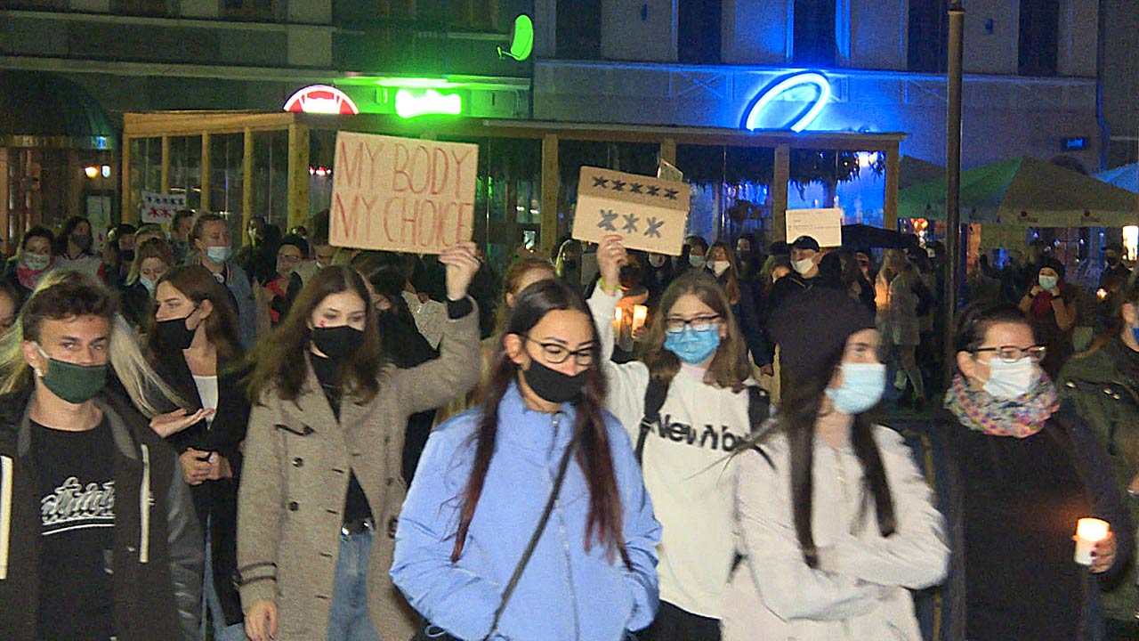 Kiedy tłum bezpiecznie dotarł pod biura PiS, zaczęto skandować hasła: „moje ciało, mój wybór”, je**ć PiS”, „precz z kaczorem dyktatorem”, „wolna Polska”. Podziękowano oklaskami policji za pomoc w przejściu. Złożono znicze i część transparentów pod biurami PiS. Nieoficjalnie dowiedzieliśmy się, że dwie osoby wyłapane za brak maseczek.